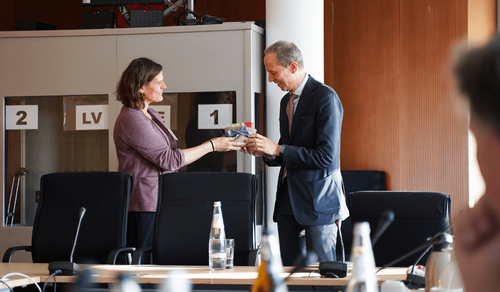 In Berlin angekommen, empfing strahlender Sonnenschein die Teilnehmenden; ein stimmungsvolles Willkommen im politischen Herzen der Republik. Zunächst führte der Weg in das Paul-Löbe-Haus des Deutschen Bundestags. Dort stand als erster inhaltlicher Programmpunkt ein Besuch beim Hauptverband der Deutschen Bauindustrie auf dem Plan. Im Fokus: nachhaltiges Bauen mit besonderem Blick auf die Gebäudesanierung. Anne-Caroline Erbstößer, verantwortlich für Klima und Nachhaltigkeit beim Hauptverband, spannte in ihrem Input den Bogen von aktuellen und zukünftigen EU-Richtlinien über Fragen der praktischen Umsetzbarkeit bis hin zur Bürgernähe. Es wurde deutlich, wie sehr verlässliche Rahmenbedingungen, planbare Förderkulissen und standardisierte Prozesse den Ausbau klima-tauglicher Sanierungen vorantreiben können. Im Anschluss führten die Teilnehmenden einstündige Gespräche mit den Bundestagsabgeordneten Dr. Hendrik Hoppenstedt (CDU), Dr. Matthias Miersch und Adis Ahmetović (beide SPD) sowie Swantje Michaelsen (Bündnis 90/Die Grünen) aus dem Großraum Hannover. Im Mittelpunkt der Gespräche standen zentrale Aspekte der Energiewende wie etwa das Gebäudeenergiegesetz, die Strompreisgestaltung, Elektromobilität und Förderinstrumente. Der Austausch war sachlich, lebhaft und konstruktiv. Häufig ging es um Praxisberichte aus der Region Hannover und um klare Erwartungen an Planungssicherheit für Haushalte, Handwerk und Mittelstand. Die Teilnehmenden setzten spürbare Impulse für wirksamen Klimaschutz und eine verlässliche Umsetzung, die ökologische Wirkung, Wirtschaftlichkeit und soziale Fairness vereint.